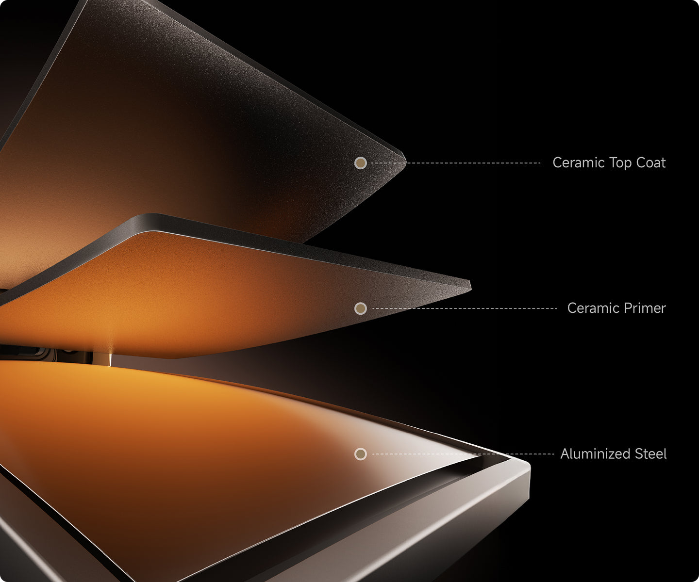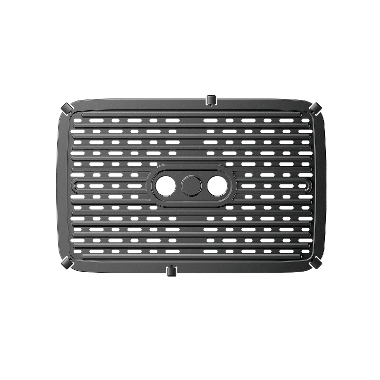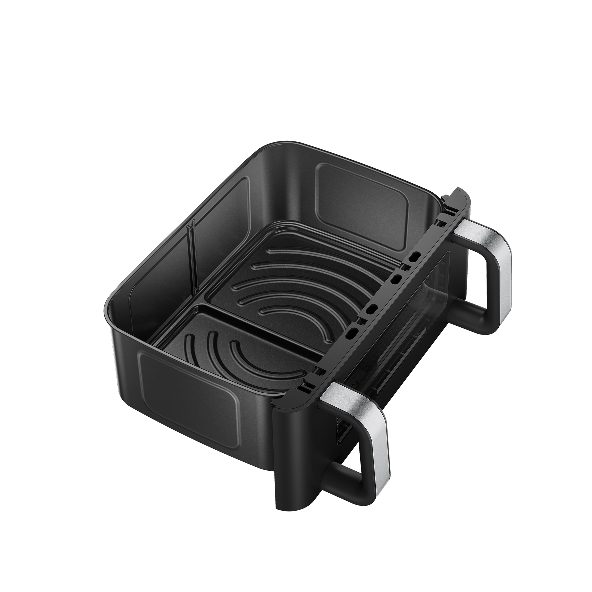 The basket, divider, and grill pan feature a fluorine-free*, ceramic coating and a durable metal interior—safe, non-toxic, and designed to preserve food’s natural taste. The surface makes cleanup quick and easy.