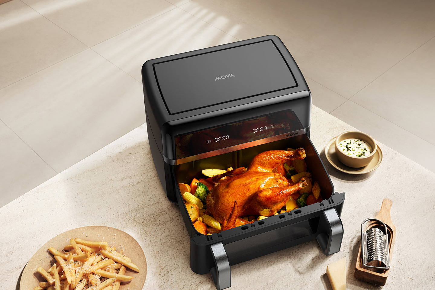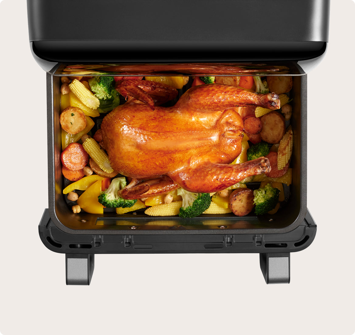 With 360° Hot Poly-Air™ circulation, it crisps food faster while sealing juices, leaving the nice golden crunch outside and tender succulence inside. Upgraded ventilation holes maximize airflow for quicker, more even cooking.