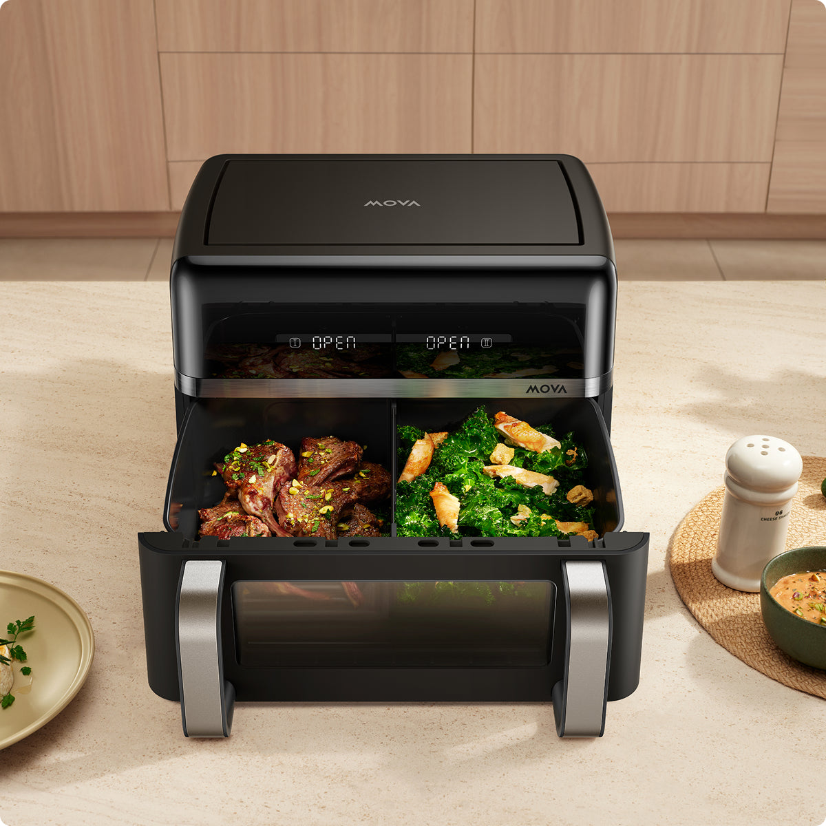 SyncFinish™ Mode can heat two zones at different temps—starting the longer-cooking dish first so both finish precisely together. Enjoy dual delicacies in sync, with no extra wait.