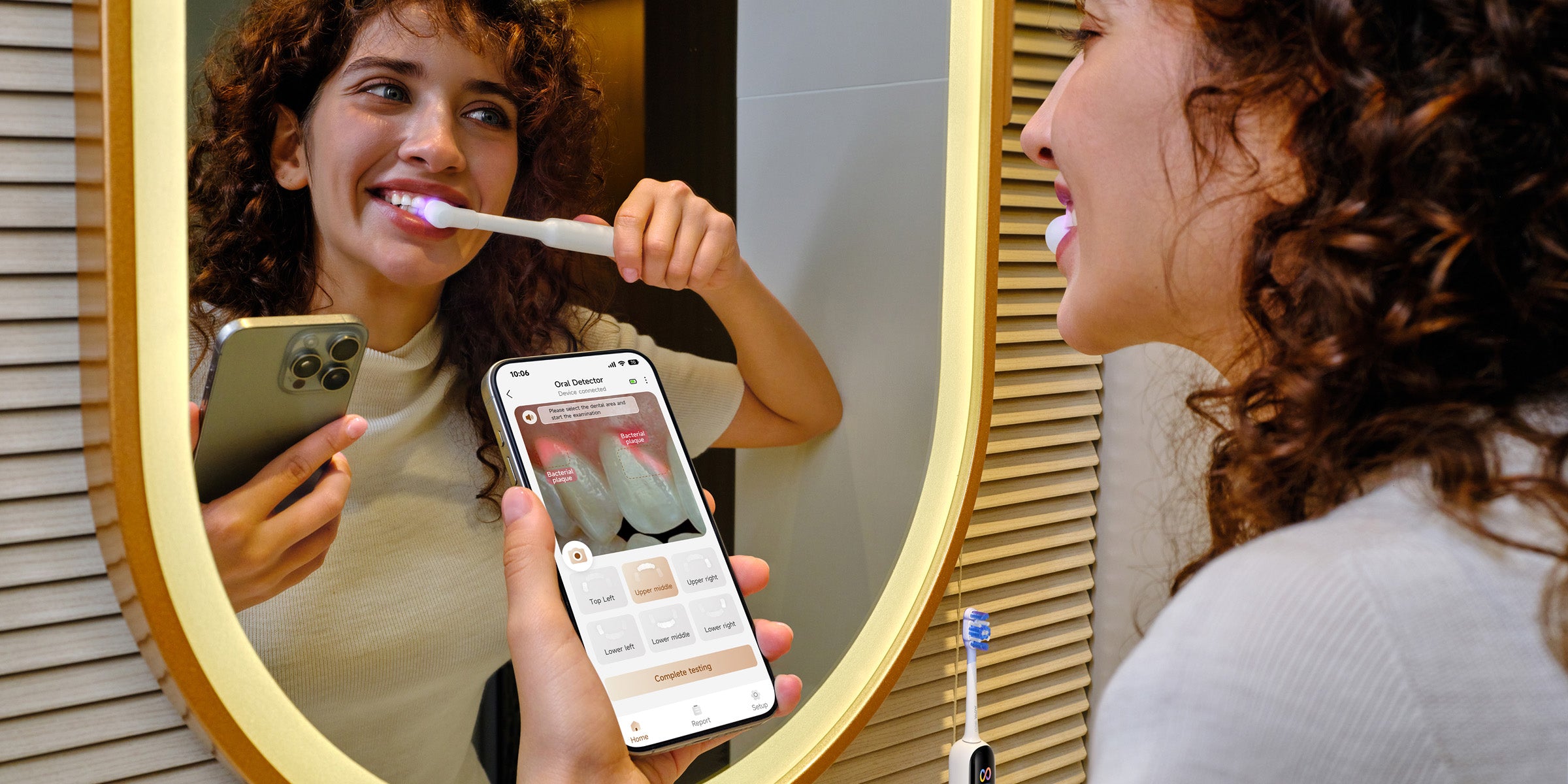 *IPX8: Refers to that the waterproof rating of the product reaches IPX8, the soaking water is normally temperature water, not hot water or steam water, the data comes from a third-party test report.The Electric Toothbrush report No:EGZ2505220052R00102R,Plaque Visualization Detector report No:EGZ2505090203R00201RM1.