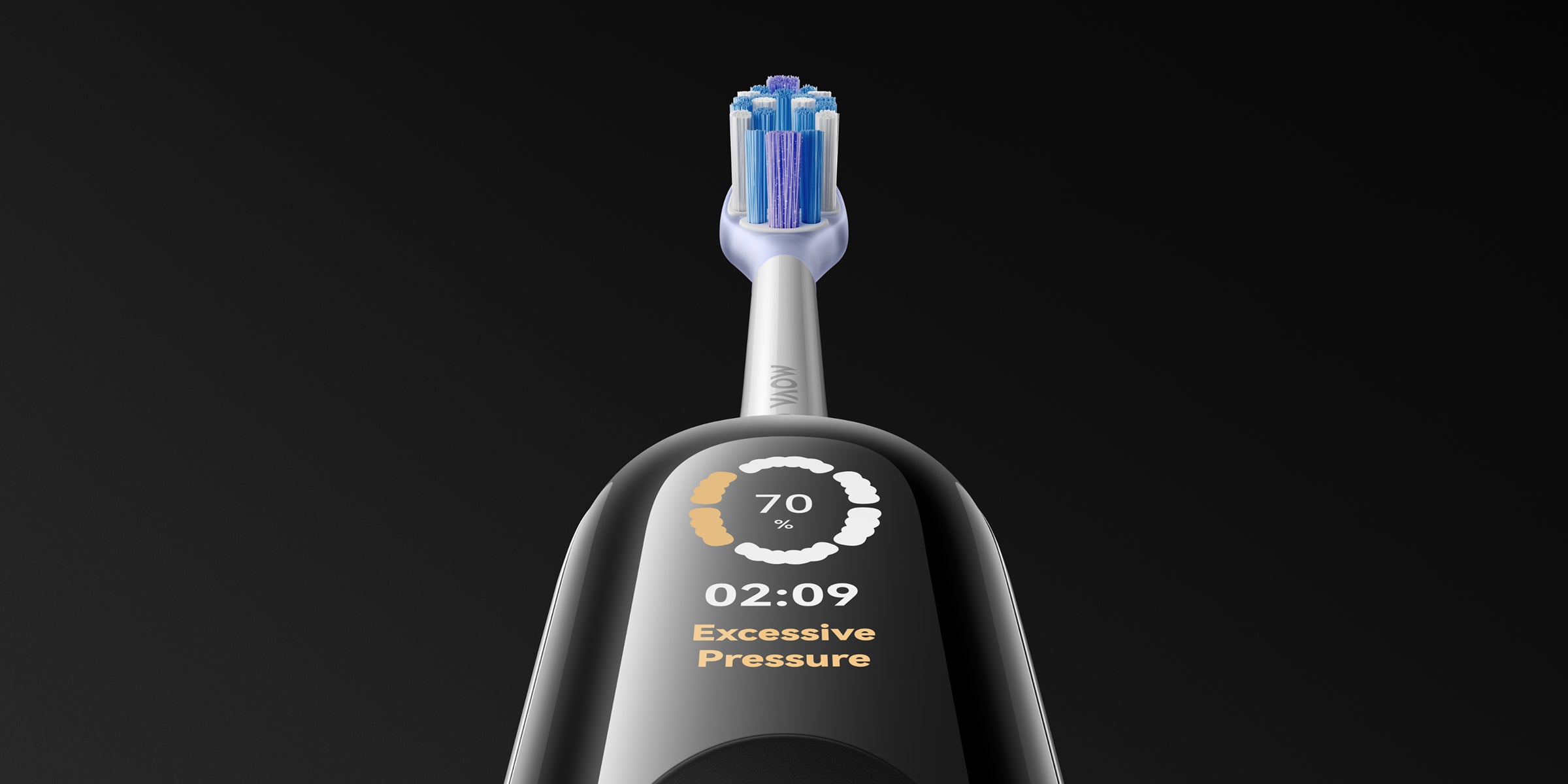 The light strip doubles as a smart pressure sensor, guiding you to the appropriate brushing pressure. Red light means too much pressure can acts to protect your gums. Yellow light means too little pressure needs hard cleaning.Even if a first-time user, you'll easily master the brushing technique.