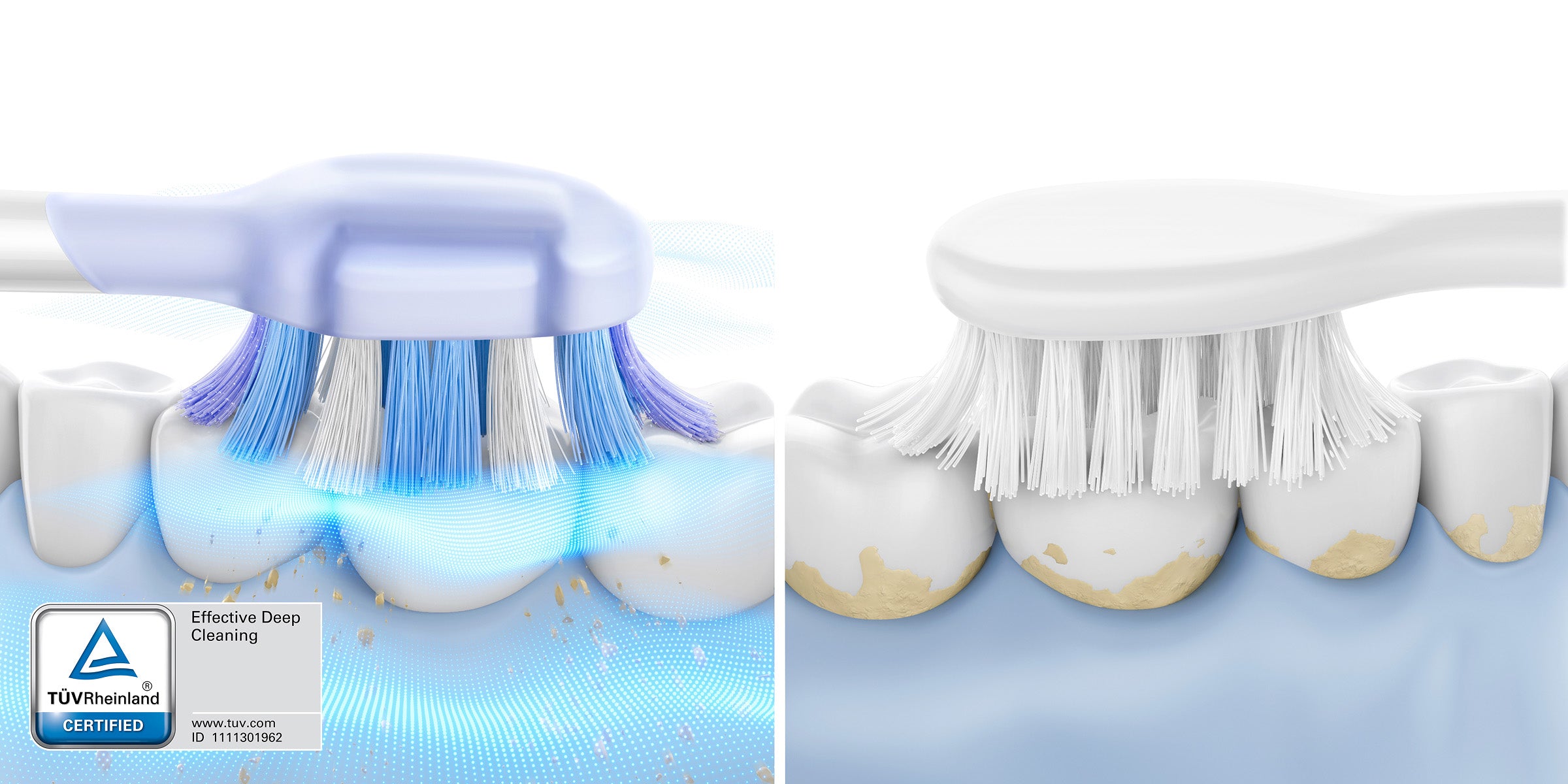 The Electric Toothbrush has TÜV Rheinland Efficiency Cleaning Certification*. Cleans 99% of the dental plaque*. Its deep-cleaning action cleans plaque and maintains your oral health.