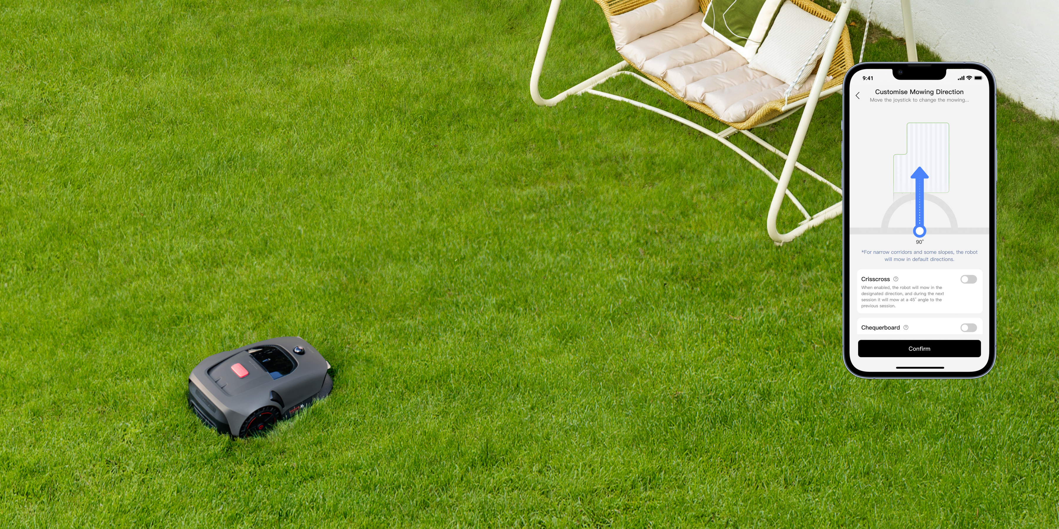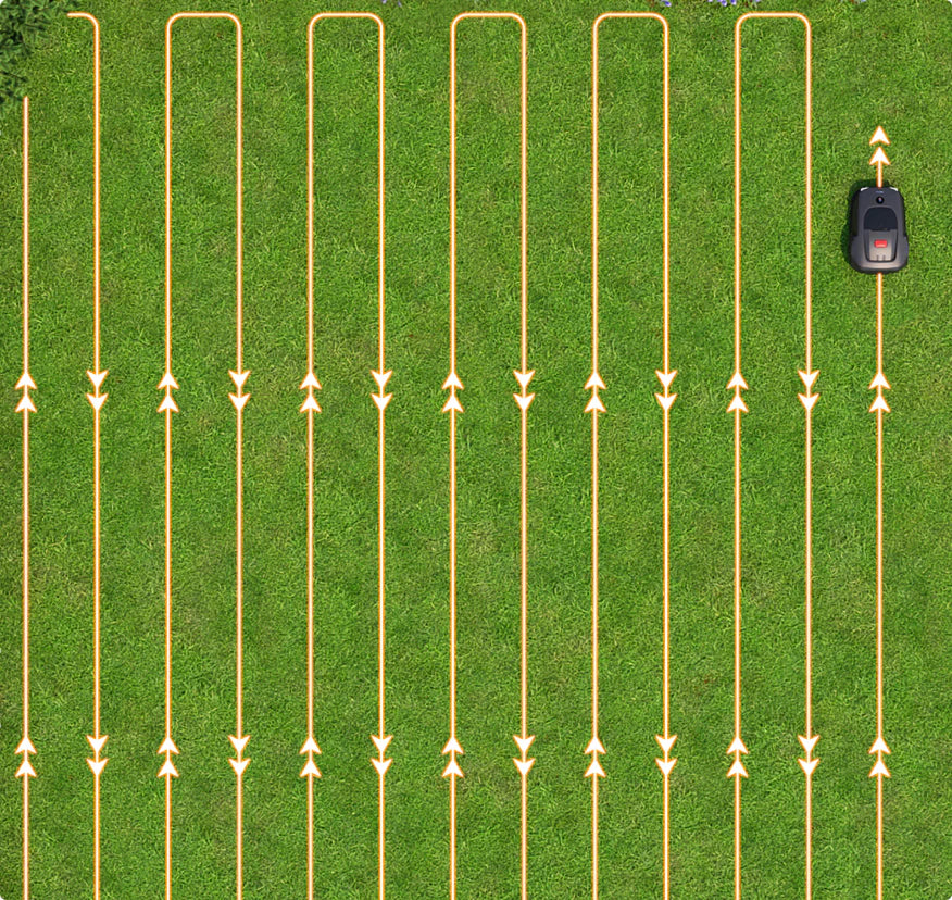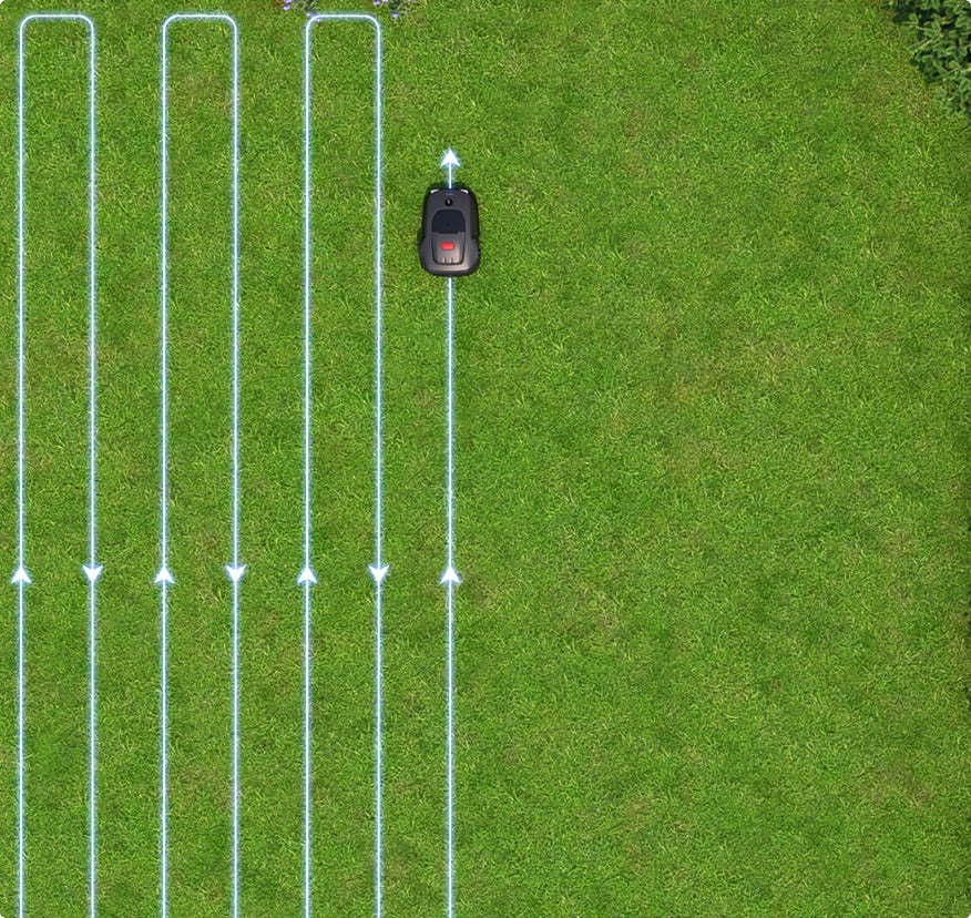 Customize your lawn's pattern: direct your mower to follow a fixed angle, 90° chequerboard, or alternating turns to perfectly match your aesthetic.