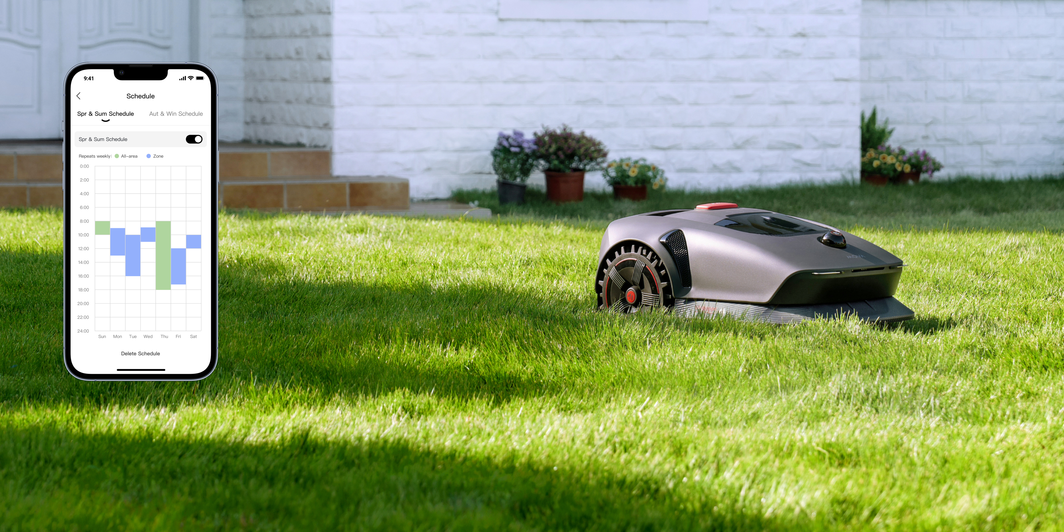 With the dual schedule feature*, you can create custom seasonal mowing schedules that adapt to varying grass growth rates and environments.