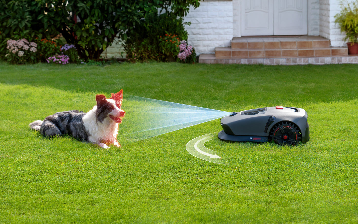 The high-precision LiDAR (30m* range) provides a 360° view, allowing the MOVA 1000/600 to perceive 3D surroundings, autonomously navigate, and construct real-time yard maps.