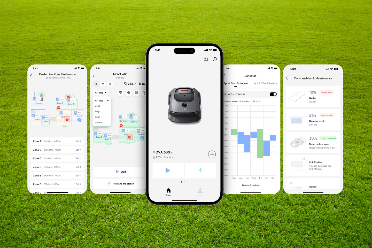 To cover more needs, the MOVA 1000/600 offers versatile mowing options, including full coverage, zone, edge, spot, and manual control.