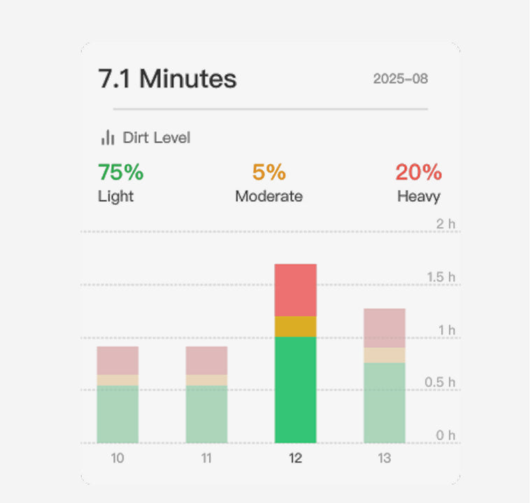 The M50 Ultra uses 100°C boiling water to thoroughly wash the brush, effectively breaking down grease and dirt while achieving 99.99% sterilization. Equipped with a dirt sensor, it can initiate an intelligent re-washing process during self-cleaning when necessary.