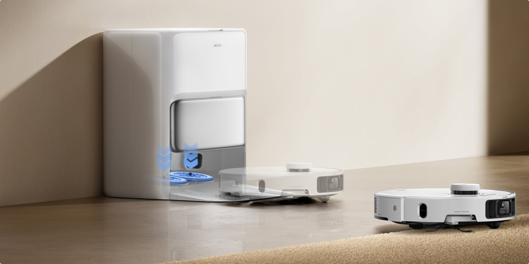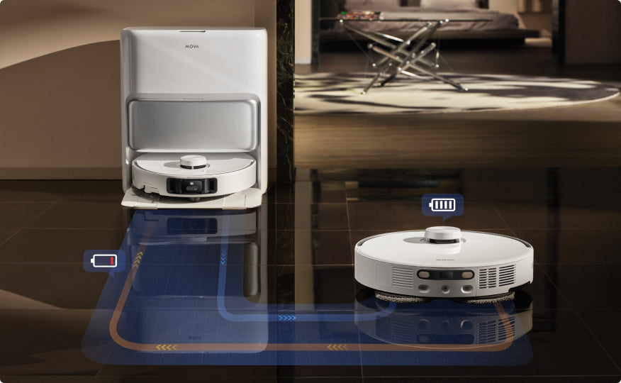 After rewashing mops, the robot vacuum rejuvenates floors for an all-around pristine finish.