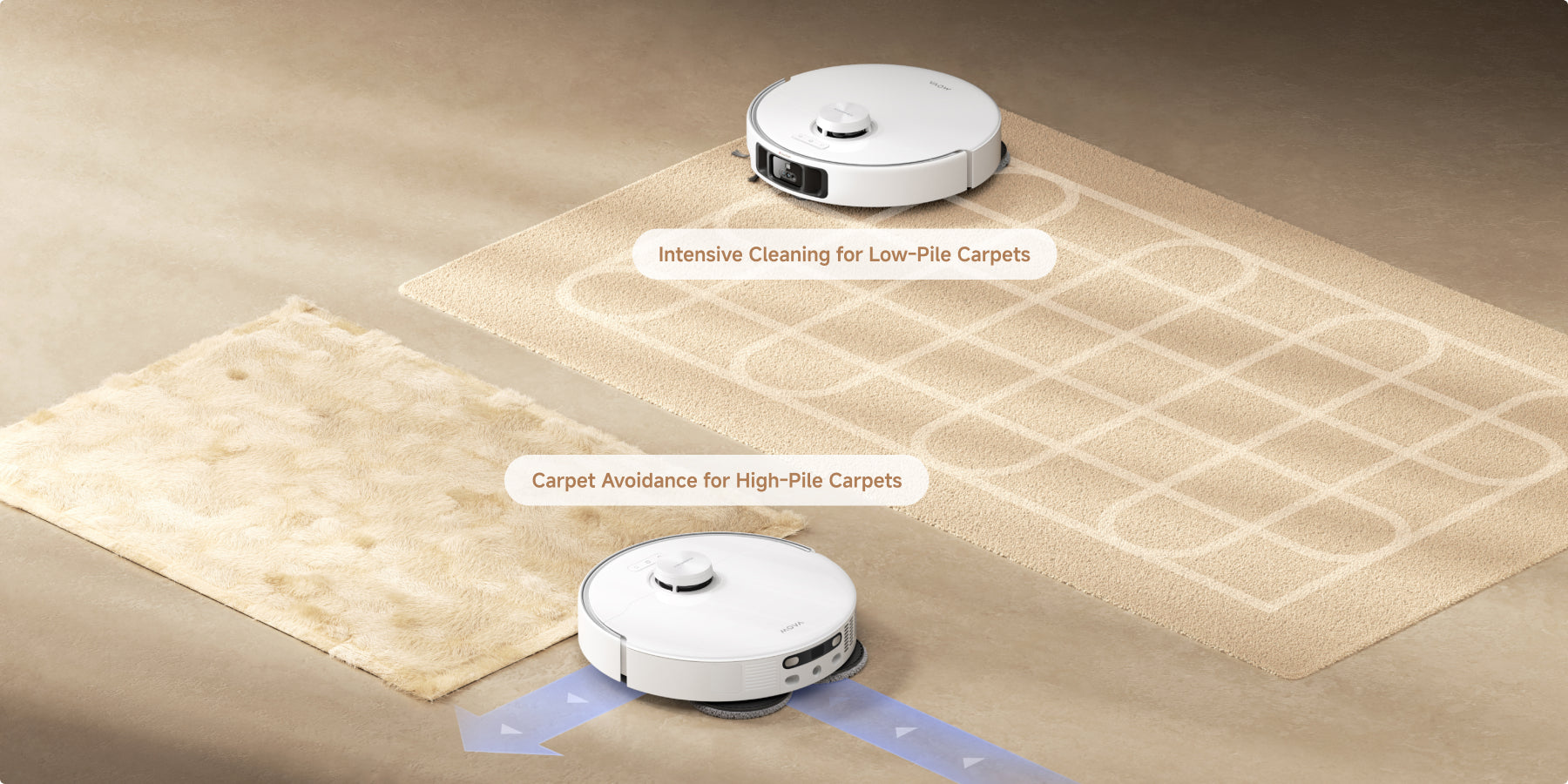 *For carpets with piles longer than 3mm (0.12in), we suggest you set the robot vacuum to avoid medium and high-pile carpets via the cleaning app and protect your carpets from getting wet.
