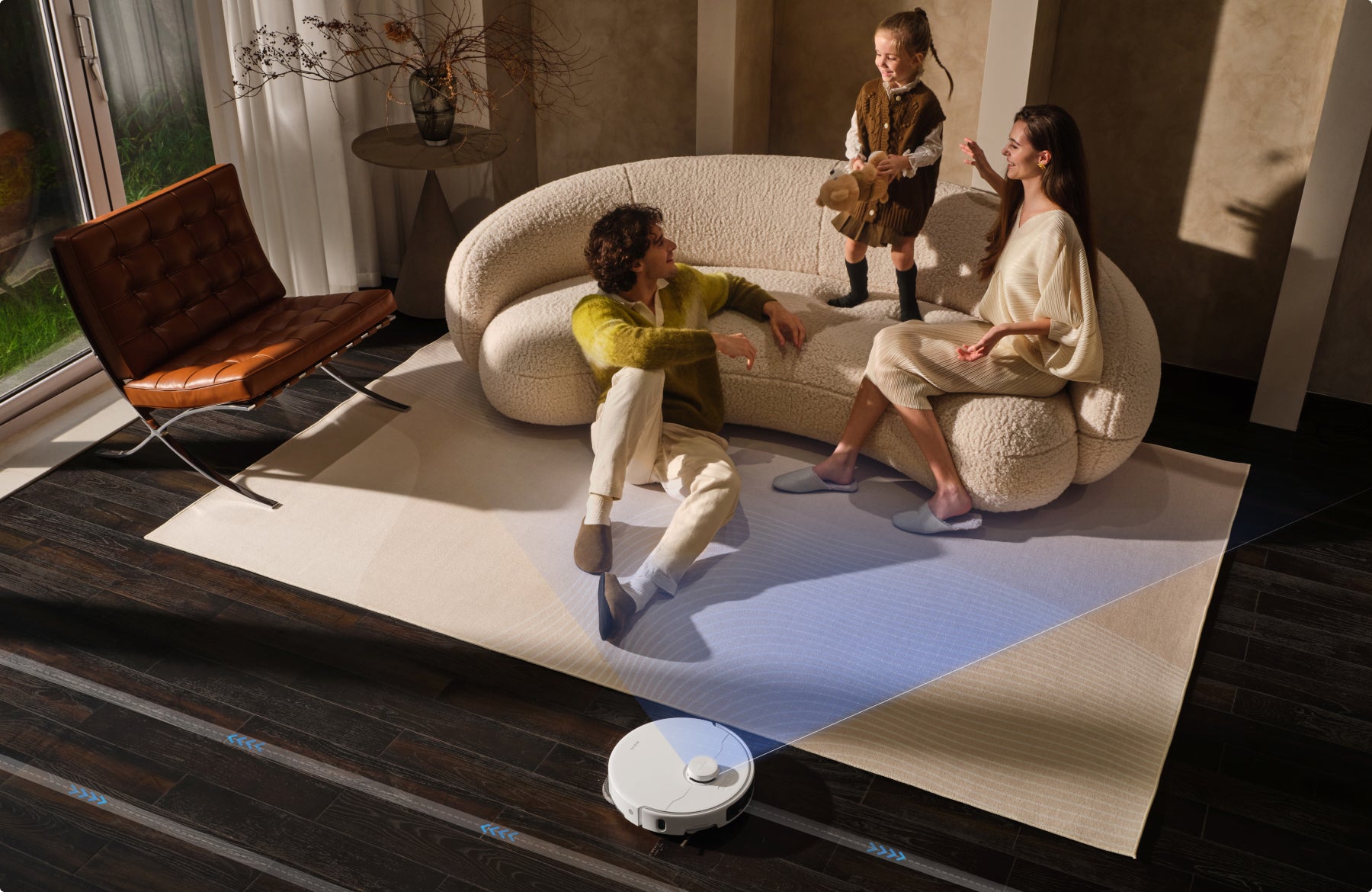 With your choice of Carpet Avoidance Mode or Carpet Boost Mode, you can enjoy an efficient carpet* cleanup. The robot vacuum boosts its suction, reviving and deep cleaning your rugs.