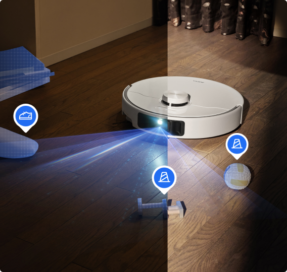 P50 Pro Ultra aptly navigates around your home environment by avoiding household objects like shoes or tables on their way and building 4-level 3D maps for smoother cleaning routes.