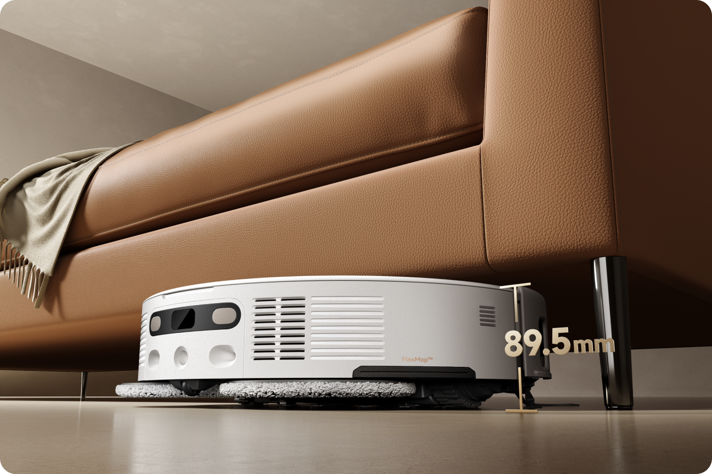 Retractable DToF sensor makes tackling dead spots under low furniture easy. With its compact height, V50 Ultra reaches even the most challenging areas, like narrow corridors and tight spaces under kitchen cabinets.