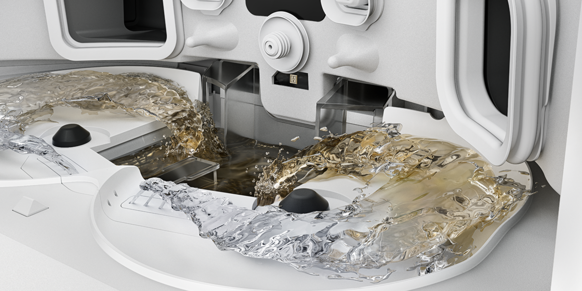 The base station adjusts water temperature and comes in 4 precise modes: hot water for stubborn stains and warm water for lighter dirt, optimizing both cleaning performance and energy efficiency.