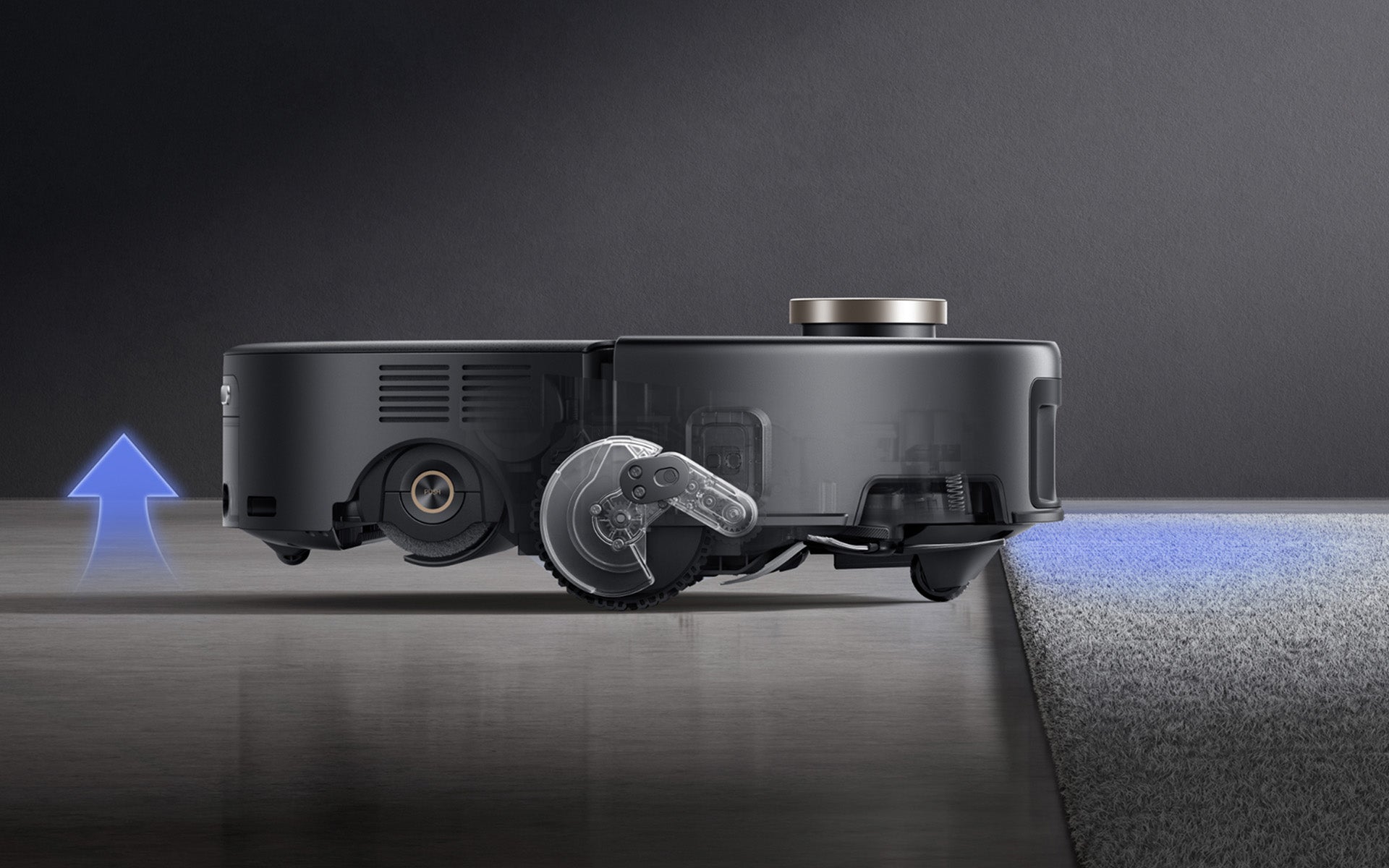 When detecting low obstacles like shag rug, it automatically lifts the entire chassis for a smoother glide that helps avoid dragging and missing debris.