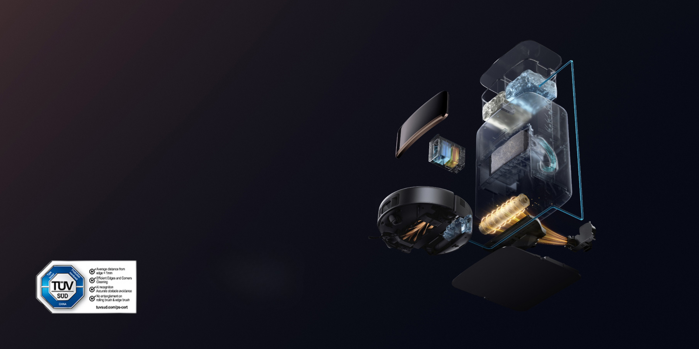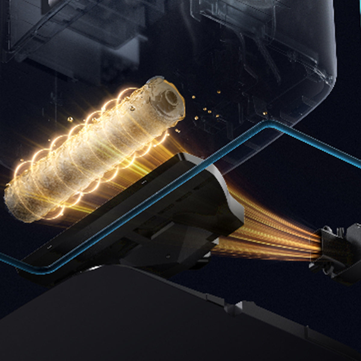 *99%: Based on our in-house lab.Actual results may vary depending on environmental factors. 99%:Based on our in-house lab.Actual results may vary depending on environmental factors.Achieved 99% hair pickup rate (0.3g mixed-length human hair on 1500×2000mm tile) in standard sweeping/mopping mode. Efficiency calculated via dustbin weight comparison before/after single-pass cleaning, with tangle resistance verified.