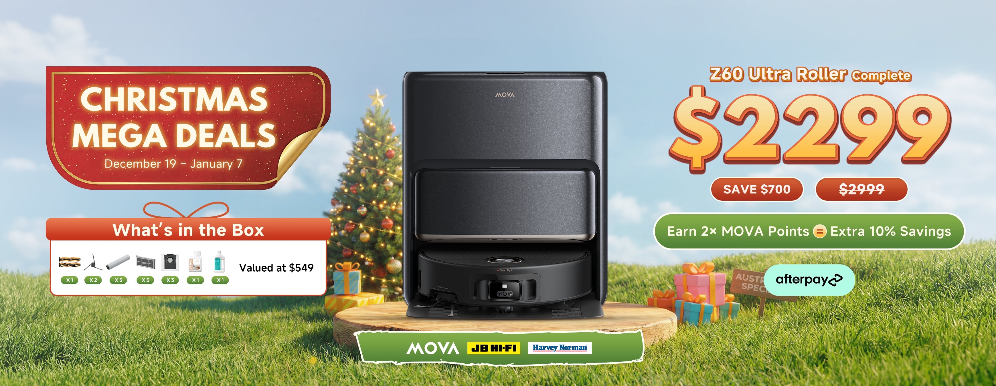*MOVA Z60 Ultra Roller Complete includes an extra accessory kit with: Main Brush x1, Side Brush x2, Dust Box's Filter x3, Dust Bag x3, Roller Mop x3, 1L Cleaning Solution x1 and 200ml Pet Odor Solution x1.
