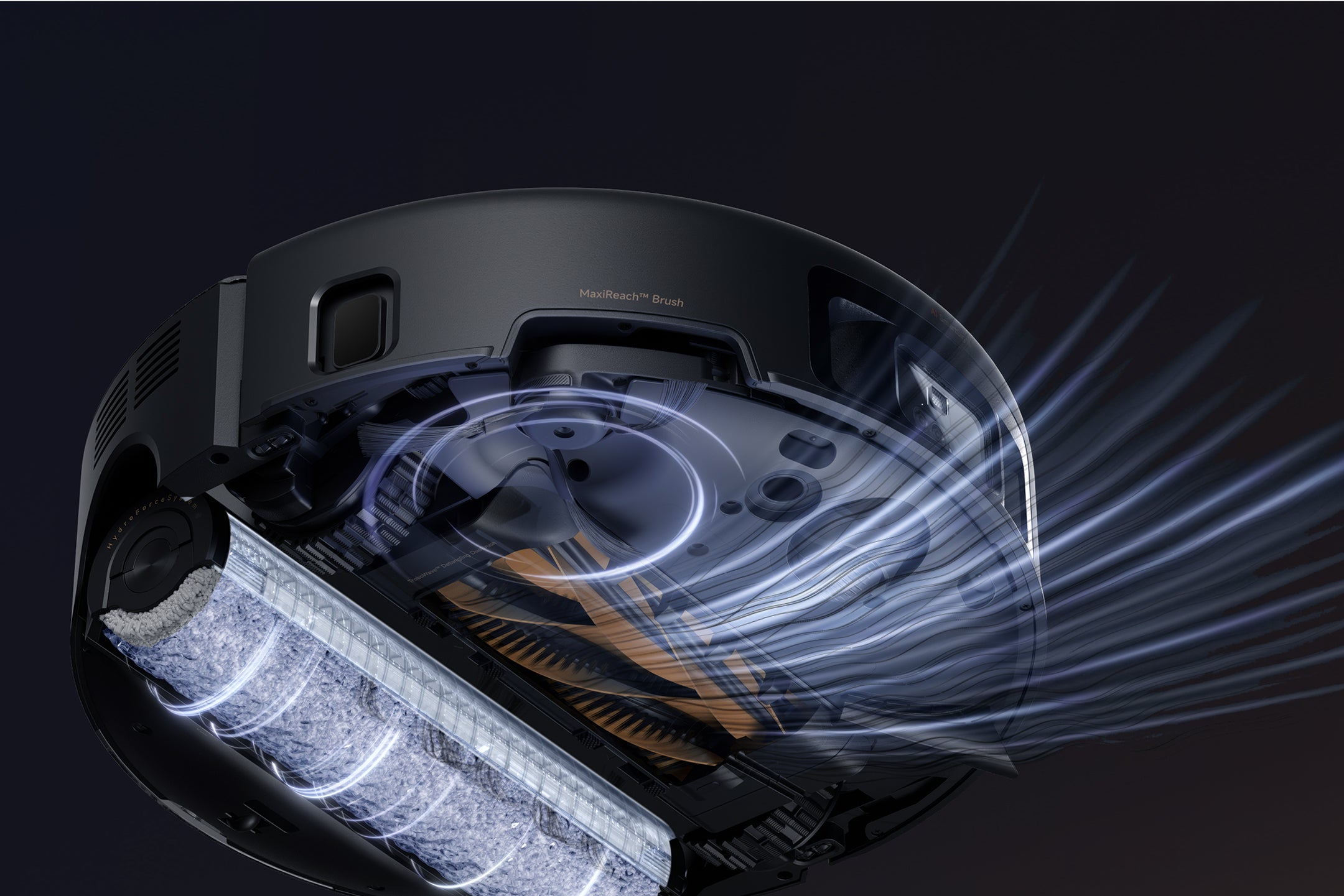 With MaxiReach™ Mop, the already extended 25.6cm roller mop can extend further by 4.1cm, working with edge-laser navigation and HydroForce™ Mopping to clean tight corners and along walls with power and precision-like never before*.
