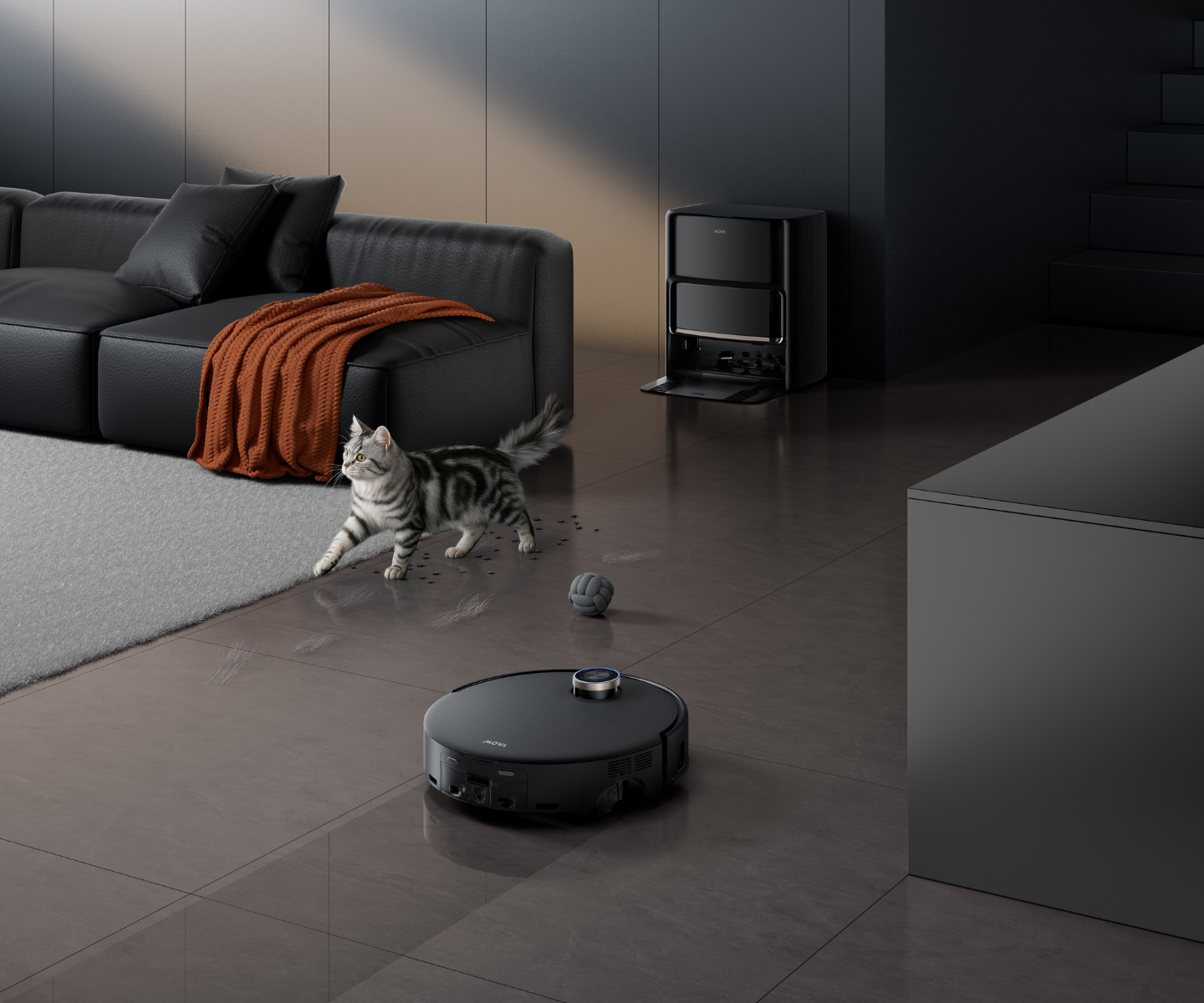 Designed for pet owners, it cleans with care and watches with heart, steering around pet wastes, capturing pet's cute moments, allowing for remote interaction, and generating fun GIFs. Love is always on, always thoughtful.