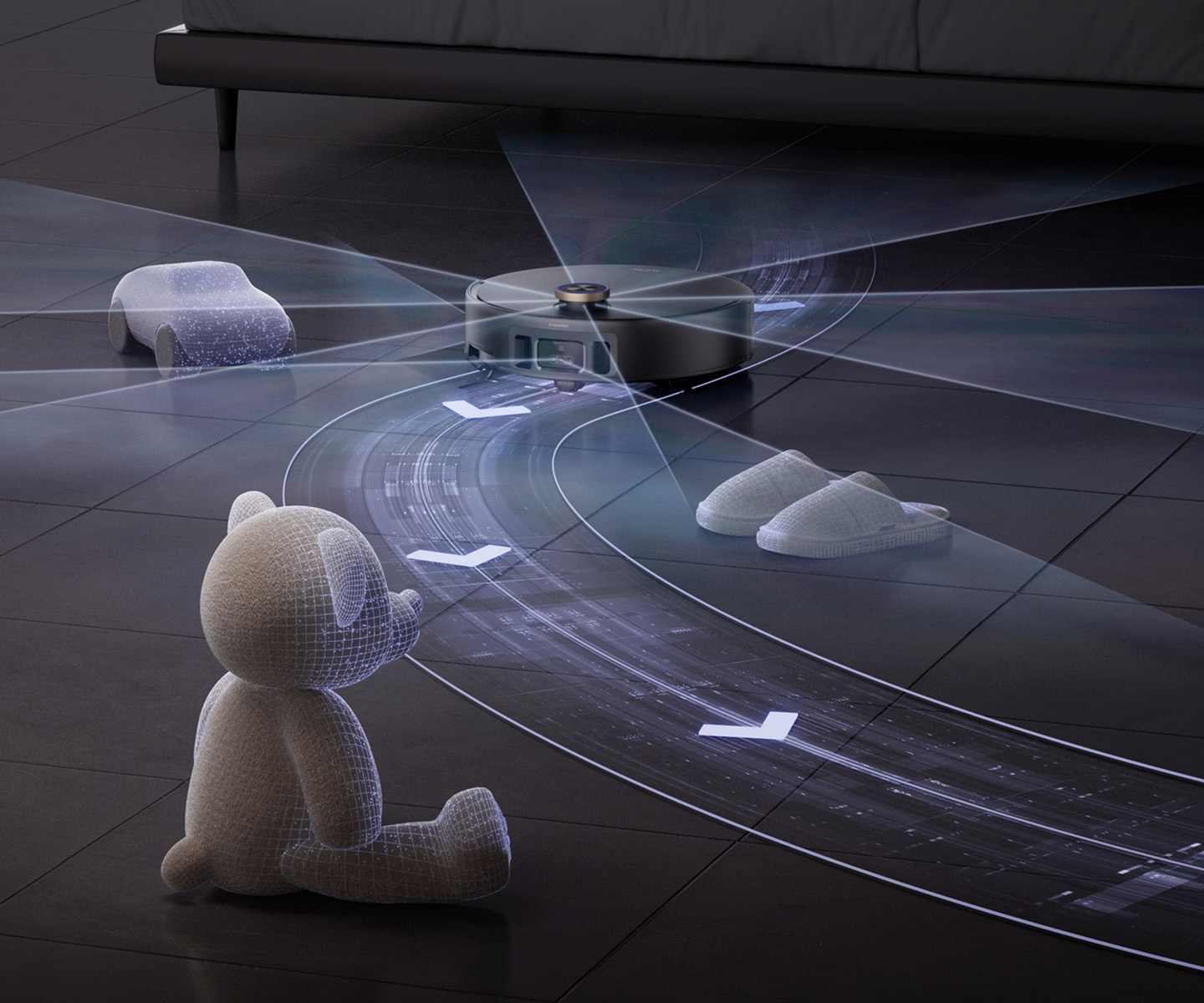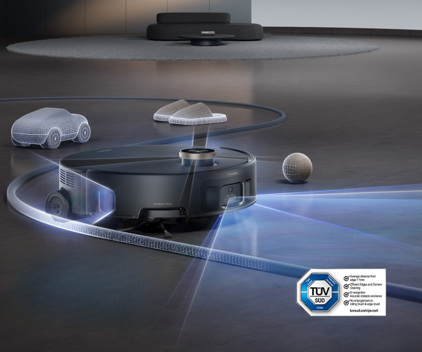 With Dual-Laser 3D Structured Light + RGB AI + Side-Edge Laser + LED. Z60 Ultra Roller sees what often goes unseen. From under-cabinet to narrow hallways, it navigates through tricky corners, slipping in with its ultra-slim 96mm* body for blind spot cleaning.